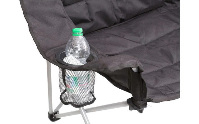 Neu entwickeltes, sehr komfortables 2-Personen-Sofa mit leicht abgewinkeltem Faltgestell. Mit zentral angebrachtem Organizerbereich mit 2 Gazetaschen. Bequem gepolsterter Sitz- und Rückenbereich. SekundenschnellerAuf- und Abbau ohne spezielle Montage. Inkl. Packtasche.