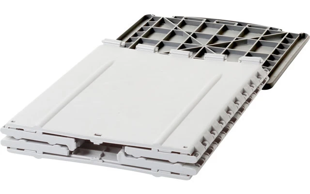 Klappbarer Abfalleimer aus Kunststoff. Im zusammengeklappten Zustand extrem platzsparend. Aufgeklappt hat der Abfalleimer ein Fassungsvermögen von 30 Litern.