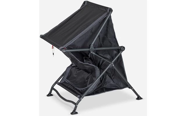 Die Hülle besteht aus extra stabilem Polyester mit 2 praktischen Ablagen, 2 Fächern an der Seite und einem Netzfenster auf der Rückseite. Die verstellbaren Beine können separat eingestellt werden. Die Stabilisatoren sorgen für zusätzliche Stabilität, sodass der Schrank auf jedem Untergrund stabil steht. Kommt in einer Tragetasche.