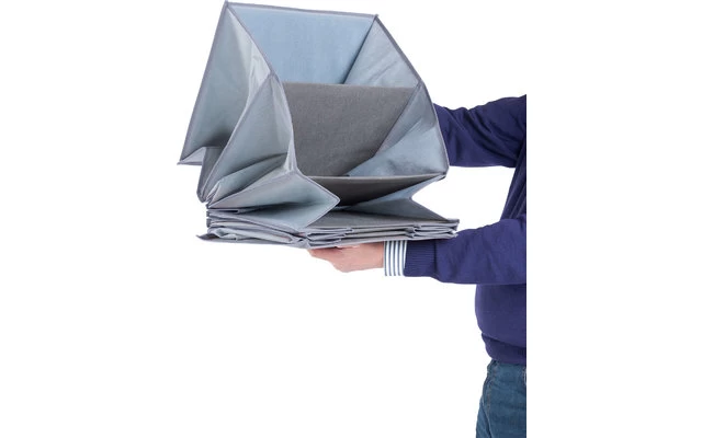 Seitenwände wie eine Ziehharmonika zusammengedrückt und platzsparend verstaut werden.