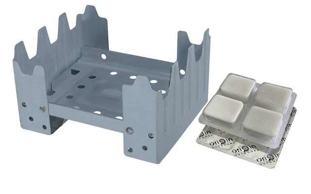 Trotz des handlichen und bewährten Taschenformats können die vier Brennstofftabletten im Kocher transportiert werden. Der Auf- und Abbau erfolgt in Sekundenschnelle. Im Set enthalten sind bereits 4 x 14 g Origin Outdoors Trockenbrennstofftabletten.