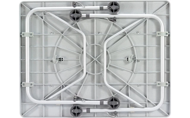 Der ideale Tisch für 2 Personen überzeugt durch sein geringes Gewicht und kompaktes Packmaß. Die in einem Stück hergestellte Platte ist resistent gegen Feuchtigkeit. Alle 4 Beine sind stufenlos verstellbar.